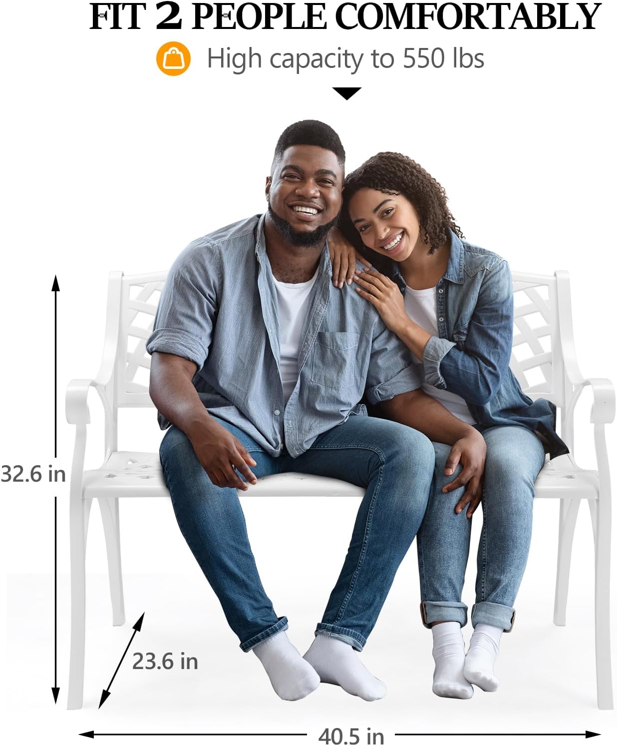 - COMFORTABLE SEAT: The 38 inch seat is enough for 2 people with a weight capacity of 550 pounds. It comes with ventilate seat, smooth and round arm, durable backrest which provide comfortable seating experience