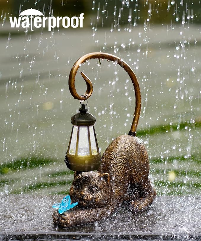 - Water Proof : The outdoor solar light is made of high quality resin, hand painted and coated with UV protection, it is durable and can withstand all weather conditions. Suitable for outdoor use, with a waterproof rating of IP44, there is no need to worry about rain;snow;frost or sleet