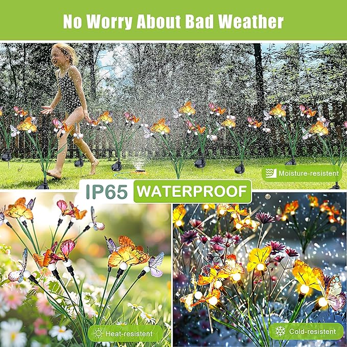 Flumy 2 Pack Solar Firefly Lights + 2 Pack Solar Butterfly Lights for Yard, Patio, Pathway, Lawn, Walkway, Camping, Pool, Solar Ground Lights Walkway Lights Deck Lights