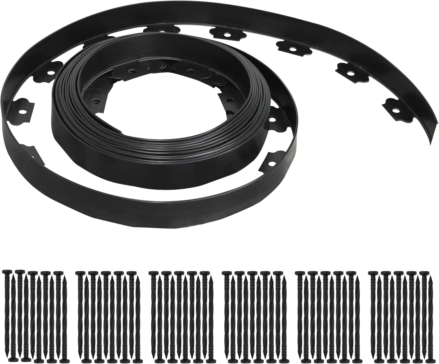 - What You Get - The garden edging border kit contains 1 pack 1.5 inches * 60 ft lawn border and 60 pcs spiral staples, enough to hold border secure in place, especially when doing curves.