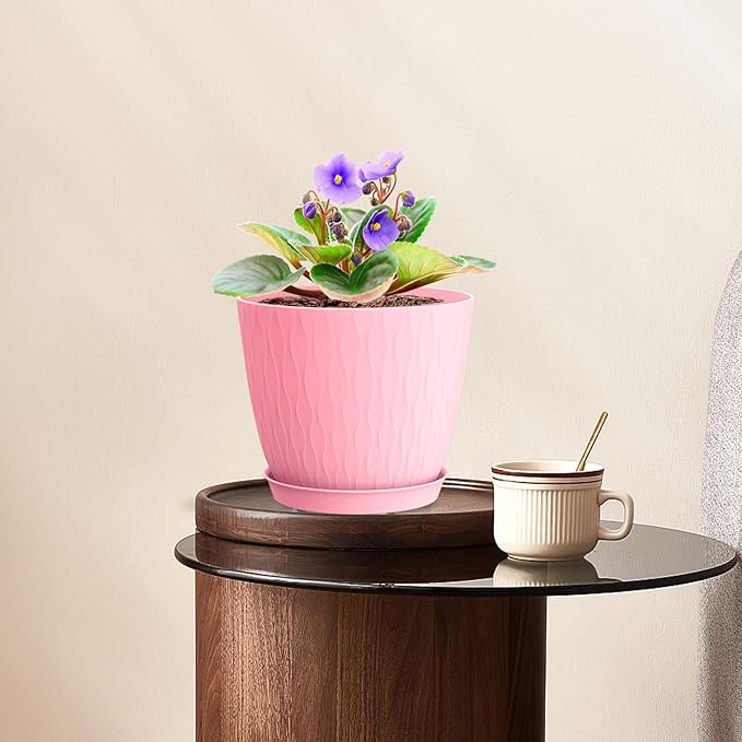 - [Sturdy PP material with Matte Finishing Exterior] There 6 inch plastic plant pots are made of 0.12inch thickness plastic. Be safety placed on the windowsill, home and office. Plastic pots are ligthweight, they tend to retain moisture, so you will water less frequently. And Easy to wash and reuse