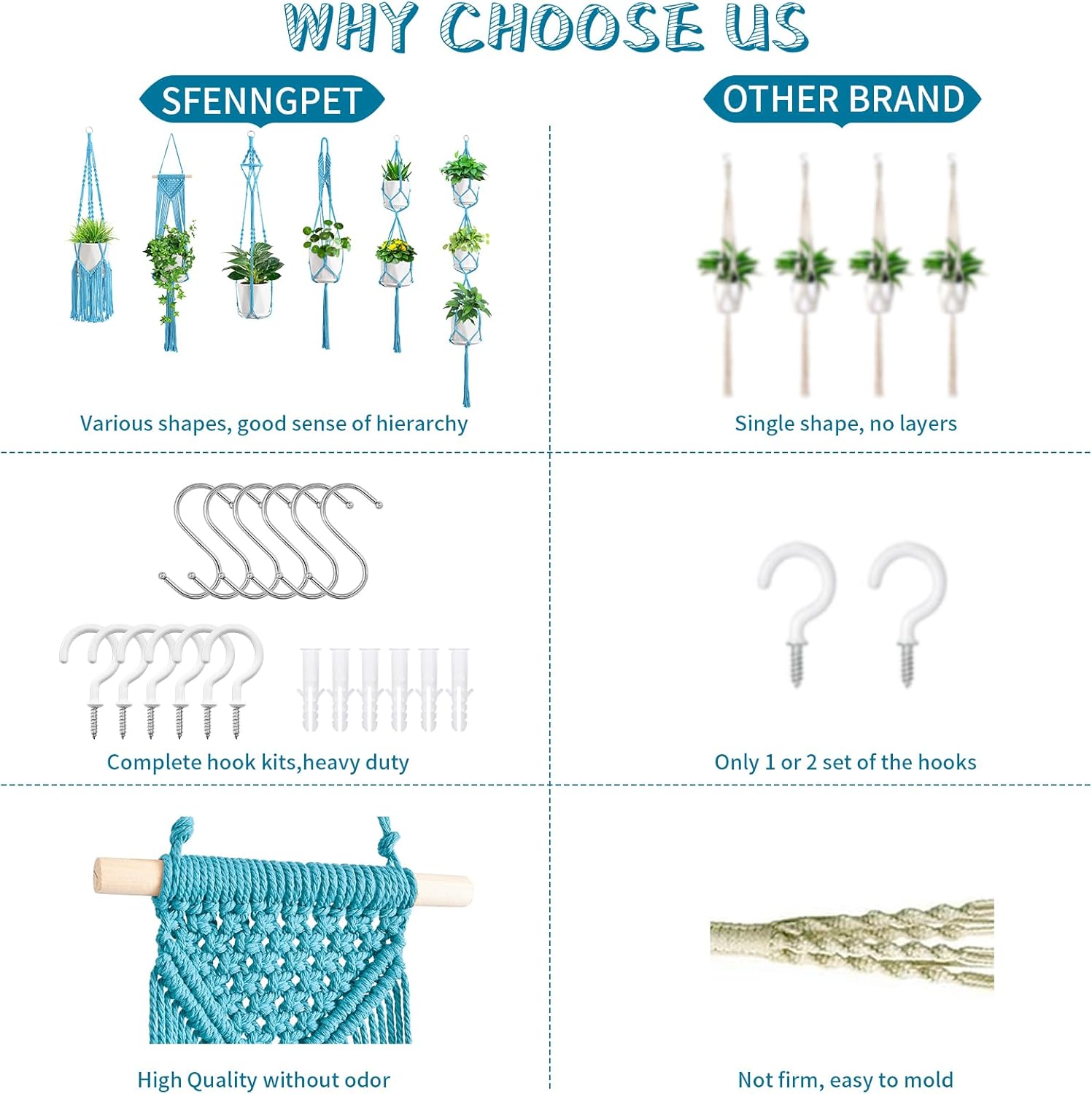 - VALUE PRESENT PACKAGE: Macrame plant hanger included six Different Sizes Crochet Plant Hangers, six“S” Hook, six Ceiling Hook, six Expansion Tube. Unique creative design, modern, retro style hanging plant add the perfect touch to your room and living room, you can hang indoor plant hangers on the ceiling in the living room, bathroom, bedroom and office. Great for indoor and outdoor décor