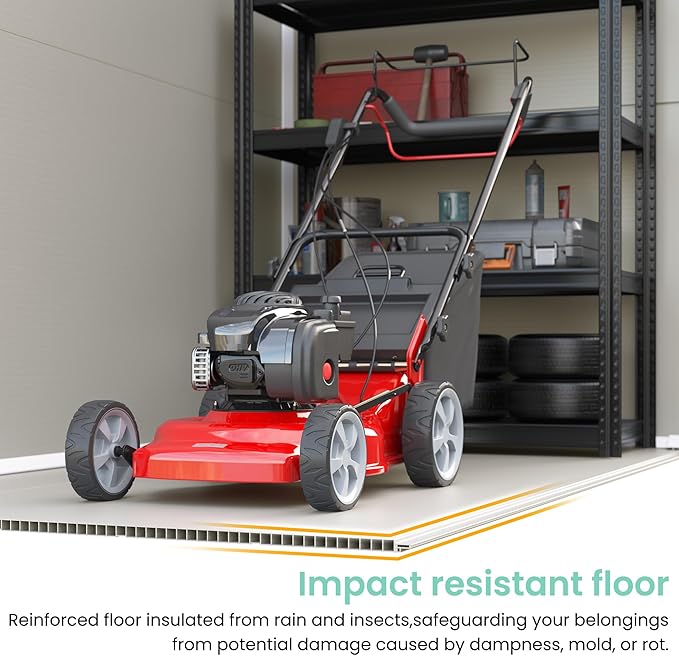 - DOUBLE-WALL CONSTRUCTION: Steel-reinforced dual-wall and an impact-resistant floor are designed for long-term durability, anti-insect, anti-corrosion, and better waterproof effect. (Maximum Wind resistant grade: 6 (24-30 mph); Maximum snow thickness tolerance: 6 inches)