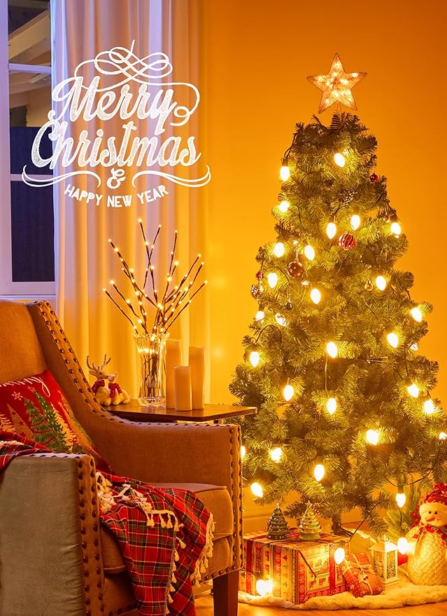 - Christmas Decorations Outdoor Yard: Each set includes 32 feet of C9 Christmas lights with 25 bulbs, 0.6W per bulb, 15" bulb spacing, 4.6" stakes, and E17 base
