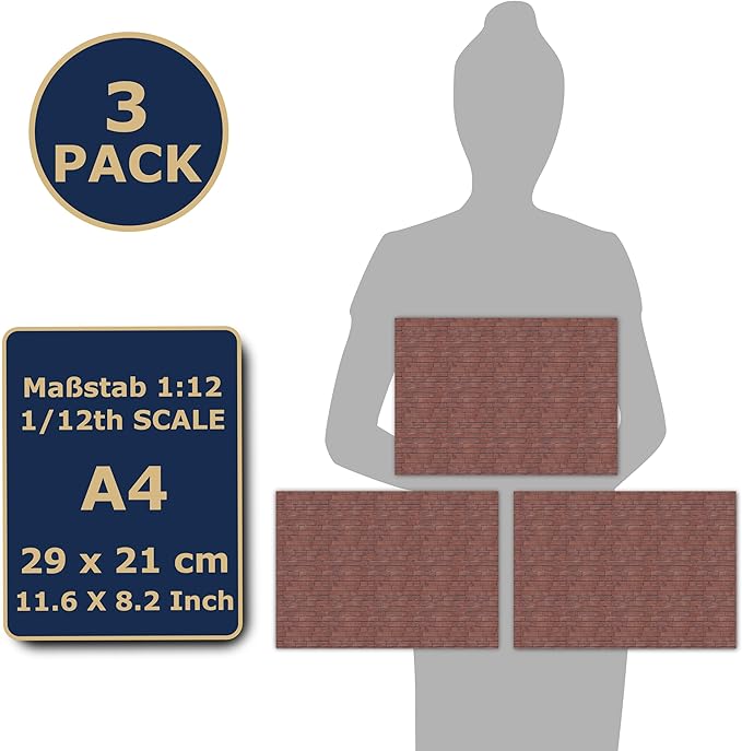 3 Sheets Self-Adhesive Wall Cladding for Dollhouse 1:12 Scale (Townhouse Style)