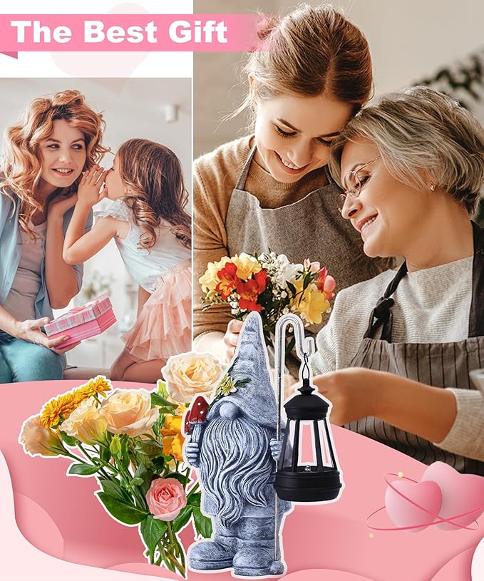 Solar Gnome Statue for Outdoor Decor: Outside Garden Sculpture for Yard Lawn Balcony Patio Porch- Birthday Gifts for Mom Women Grandma