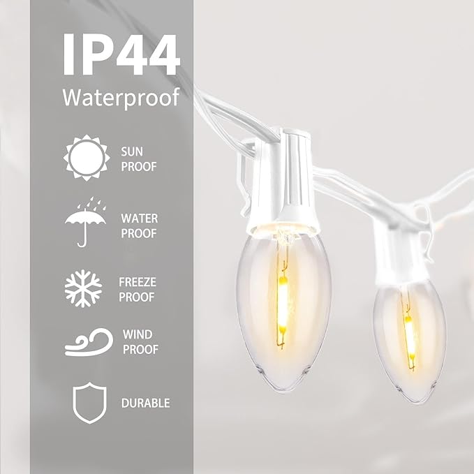- Old Fashioned Appearance and Dimmable: White wire C9 LED Christmas lights follow the shape of old fashioned bulbs with warm white lighting effect, creating a warm, harmonious and comfortable atmosphere, lighting up your life and creating exclusive memories for you