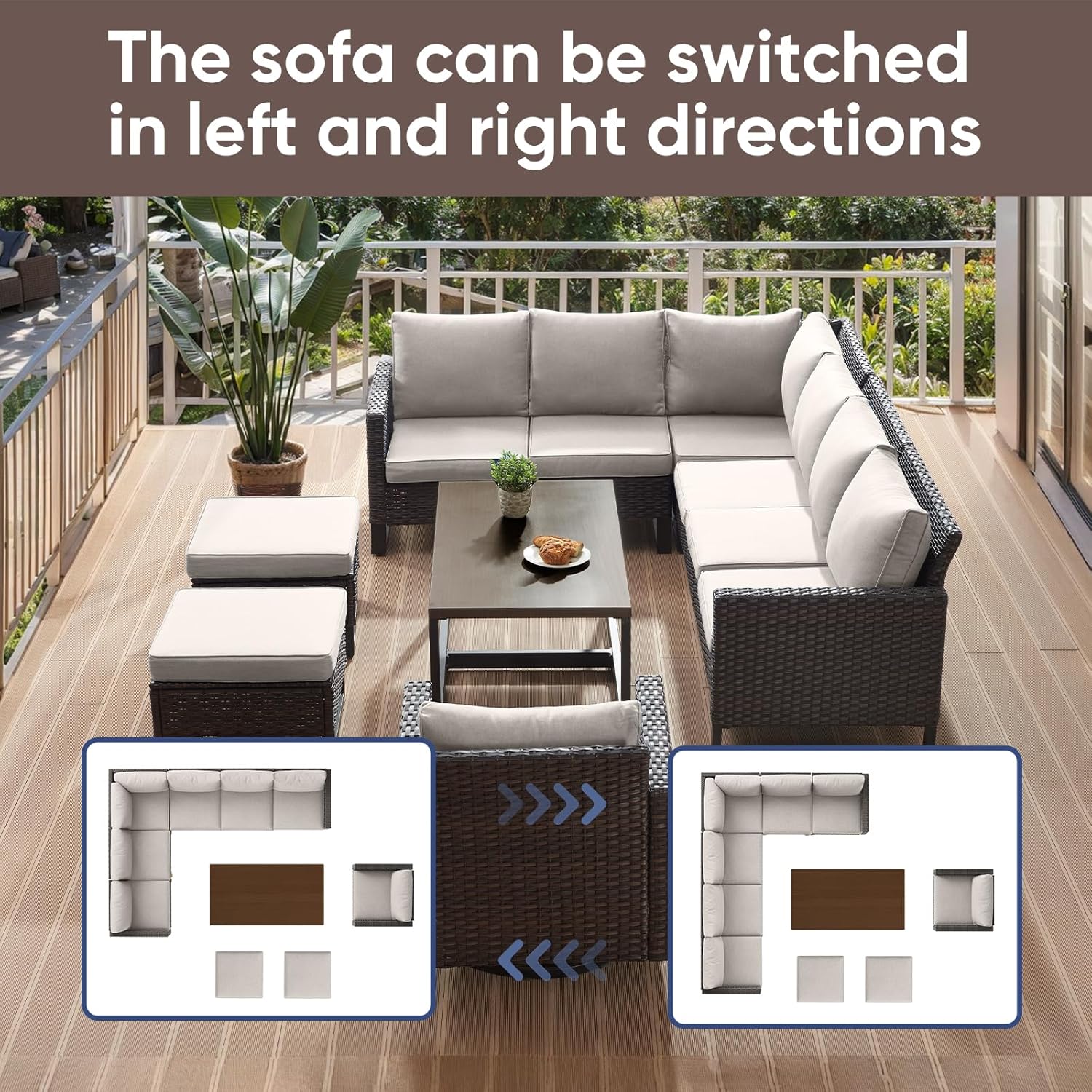 - 【Sturdy&Durable】Crafted with interior Anti-Rust powder-coated steel frame and wrapped in All-weather Hand-Woven PE wicker that make this sectional sofa set sturdy and durable,UV and Weather resistant,The upgrated rectangle feet of couch and table which add more stability.