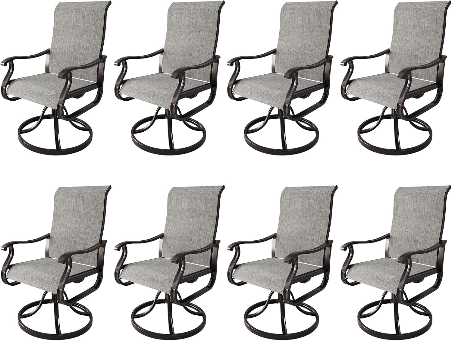 Amopatio Patio Swivel Chairs Set of 8, Outdoor Swivel Rocker Dining Chairs with All Weather Textilene High Back & Metal Frame, for Backyard Deck Lawn, Light Gray