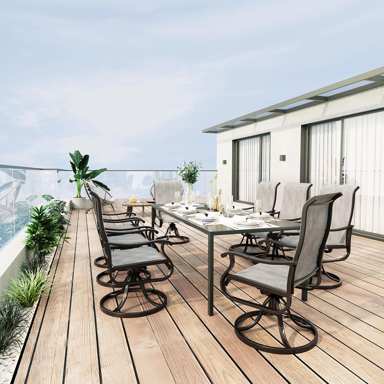 - 【360°SWIVEL & 15°ROCKING DINING CHAIRS】With a smooth 360° swivel and a slight 15° rocking motion, these outdoor dining chairs offers great flexibility and comfort for relaxing and enjoying time outdoors with family and friends, even after long hours of sitting!