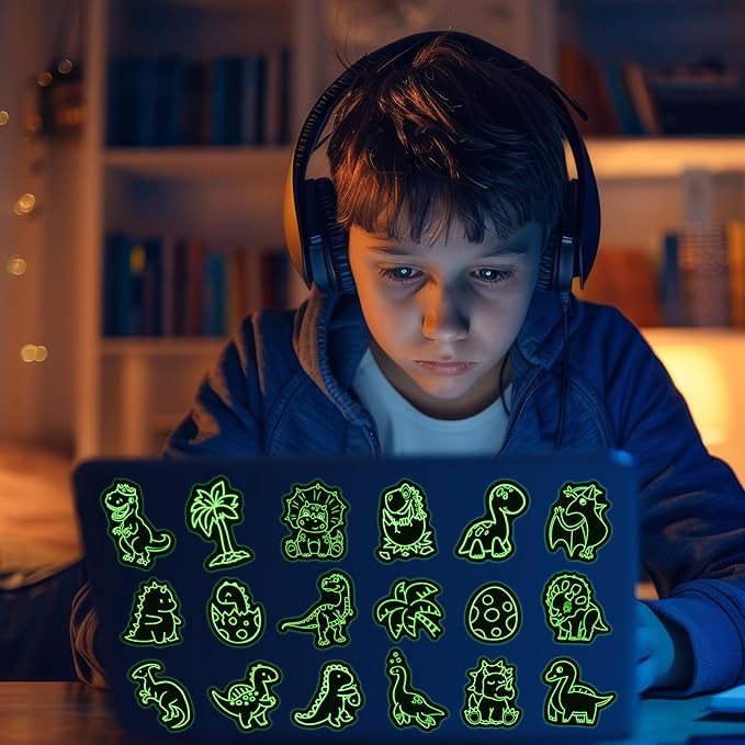 51 Pcs Neon Dinosaur Stickers for Kids Glow in The Dark, Dinos Sticker for Water Bottle, Vinyl Waterproof Laptop Decals for Teens Girls Boys, Students Adults Sticker Pack