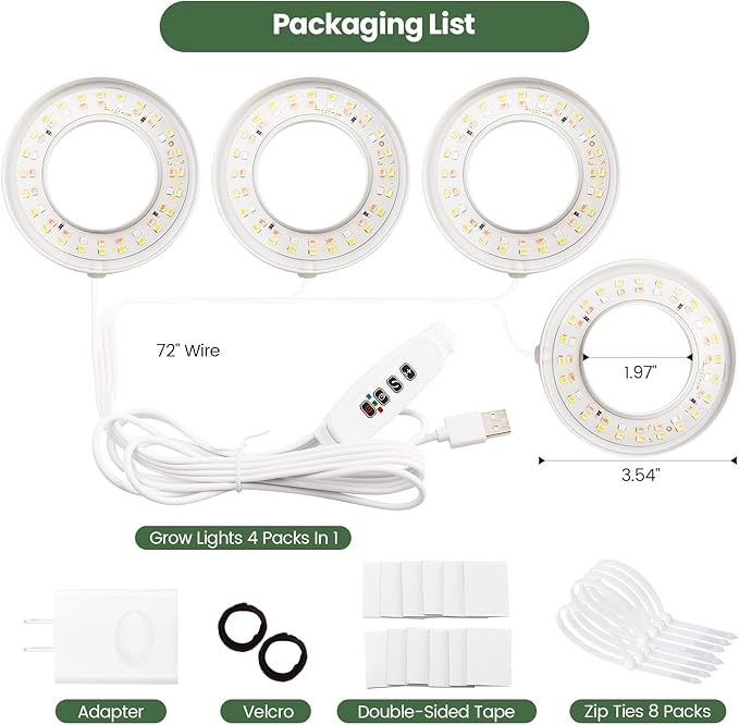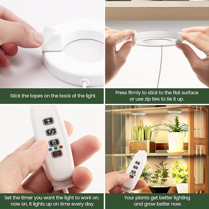 - Easy Installation with total Mounting Kits for Plant Shelf or Under Cabinet - Mosthink grow light set comes with 12 double-sided tapes and 8 ties. Fits for various surfaces . The power cord is 72 inches long for easy using in office,home,plant shelves or indoor greenhouse