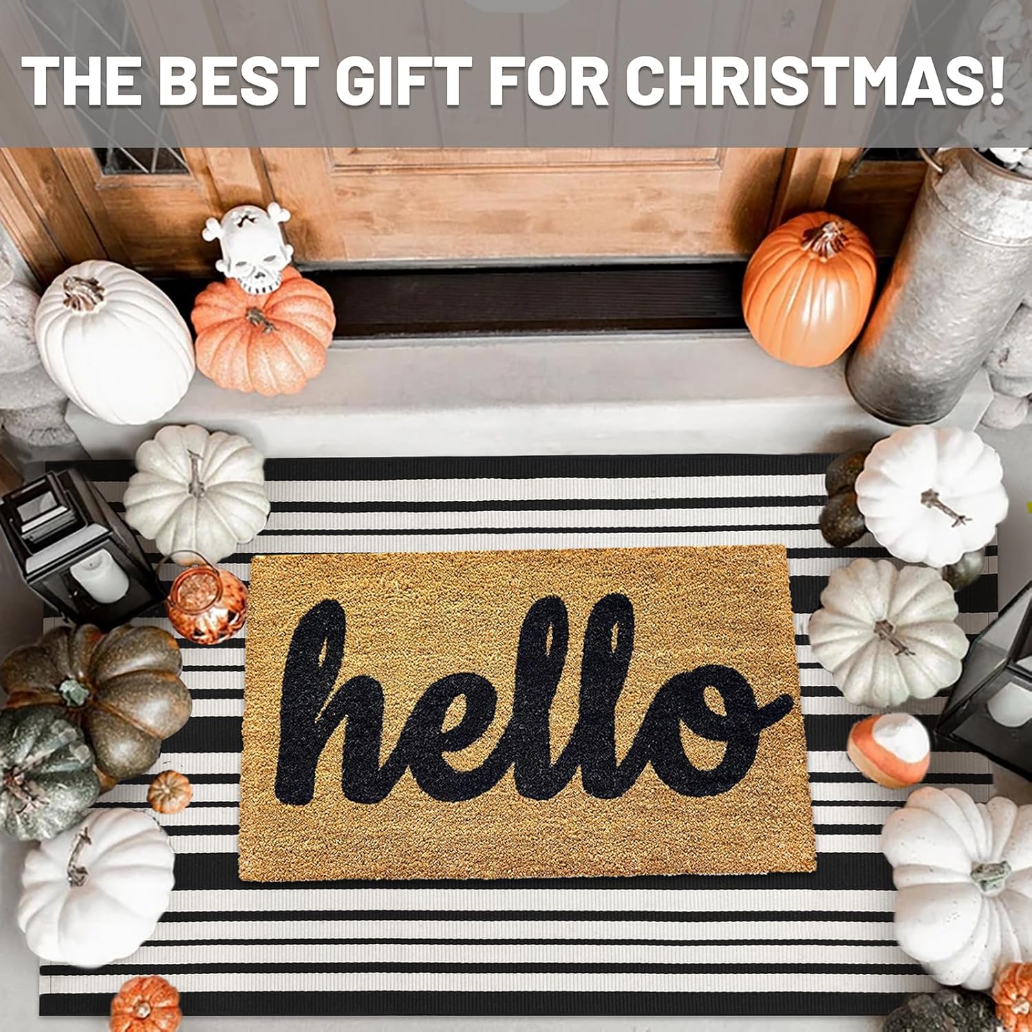 - Classic Pattern Design: Enhance your home decor with this striped indoor outdoor rug. The chic design is ideal for decorating your front porch, entryway, or living room. It also makes a thoughtful gift for Christmas, Halloween, or Thanksgiving
