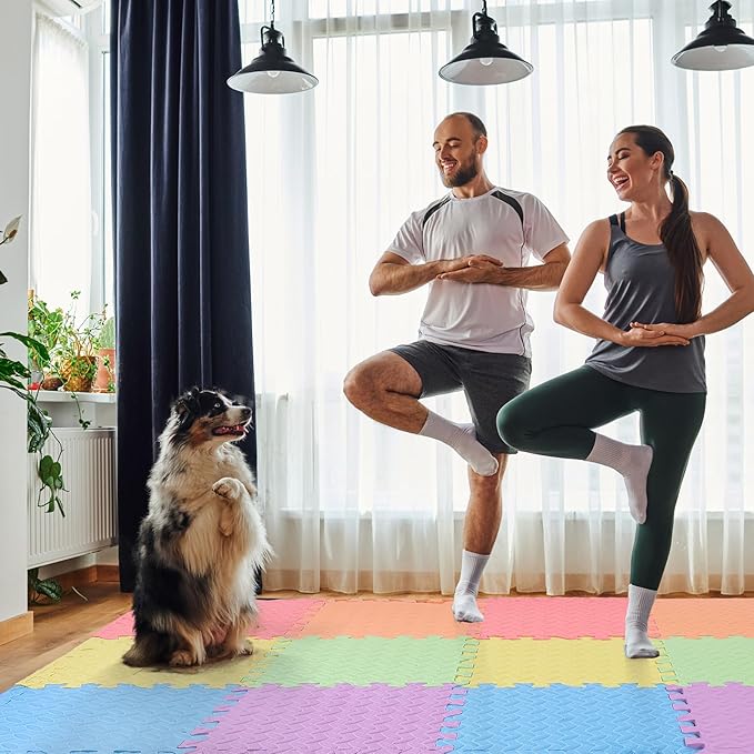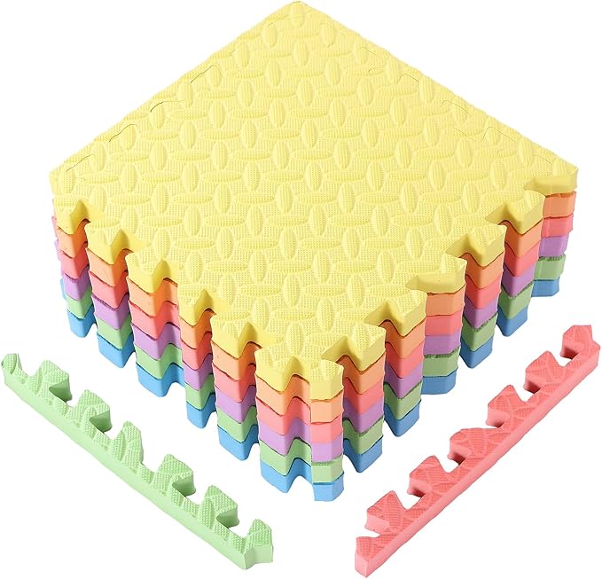 12 Tiles 12x12x1 Inch EVA Thick Interlocking Foam Floor Tiles Puzzle Exercise Mat Play Foam Mats for Boys Girls Baby Pets Home Classroom Nursery Gym(Multicolor)