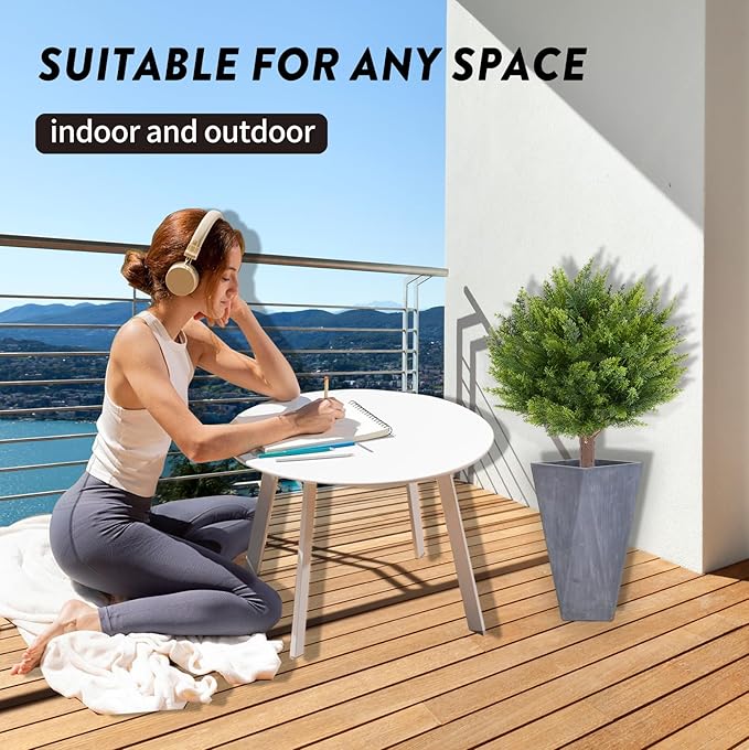 - 【Multi-medium Decoration Choice】This outdoor artificial plant cedar ball tree is realistic looking, each simulated shrub plant comes with high quality black ground spikes, you can put them into any matching pots or insert them directly into the soil, which can better match the style of your house