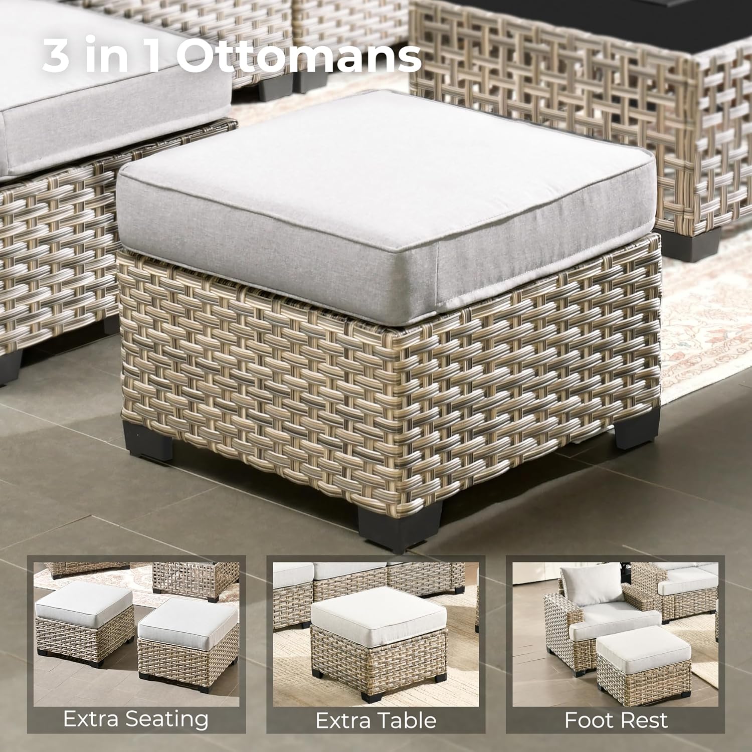 HOOOWOOO Outdoor Sectional Patio Furniture Set,7 Pieces Wicker Conversation Sets,Extra Deep Out Door Sofa Outside Furniture Couch with Ottoman,Light Gray