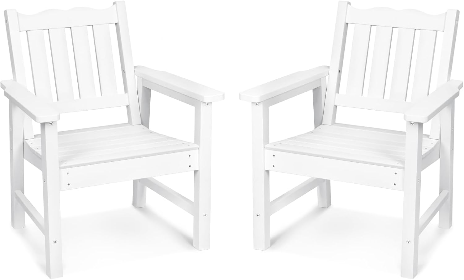 All-Weather Patio Chairs Set of 2, HIPS Outdoor Chairs with 400 lbs Weight Capacity, Patio Dining Chairs for Backyard, Deck, Garden and Porch, White