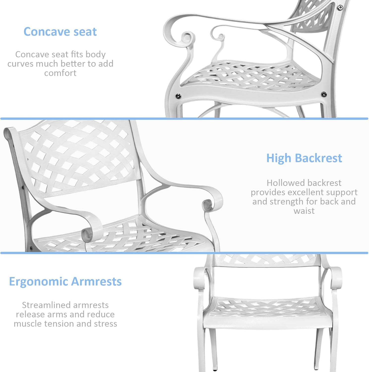 - All Weather Materials: Made of sturdy cast aluminum with a rust-resistant and fade-proof finish. Our patio bistro set is durable but lightweight, the maximum weight capacity of table is 250lbs, maximum weight capacity of a single chair is 300lbs.