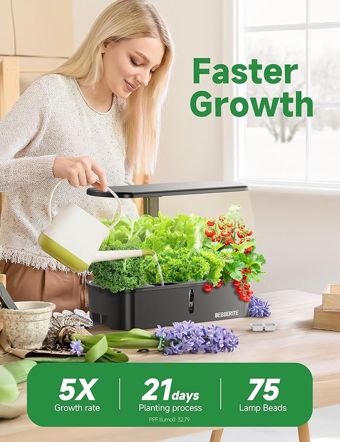 - 5X Faster Than Gardening With Soil: The hydroponic indoor garden and LED grow lights allow your favorite plants to thrive up to 5X faster and healthier all year round in water without the mess of soil, regardless of what Mother Nature is doing outside your door