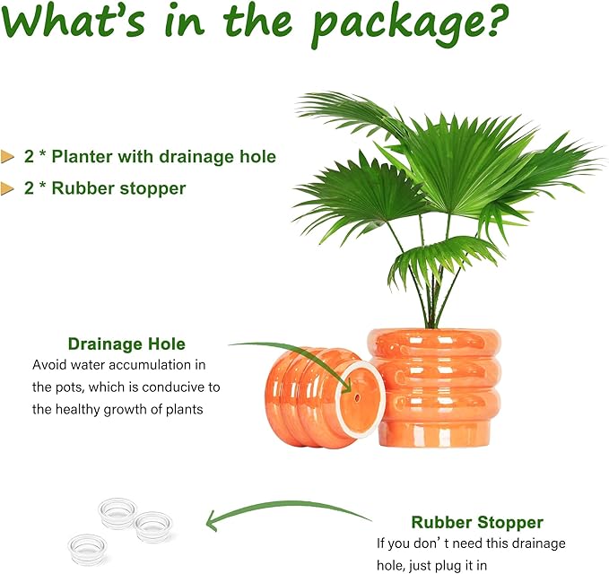 7.8 Inch + 5.7 inch 2 pcs Ceramic Plant Pots for Indoor Plants, Rainbow Pearl Glaze Planter with Planters for Plants with Drainage Hole, Orchid Pots, Succulent Pot, Flower Pot (Orange)