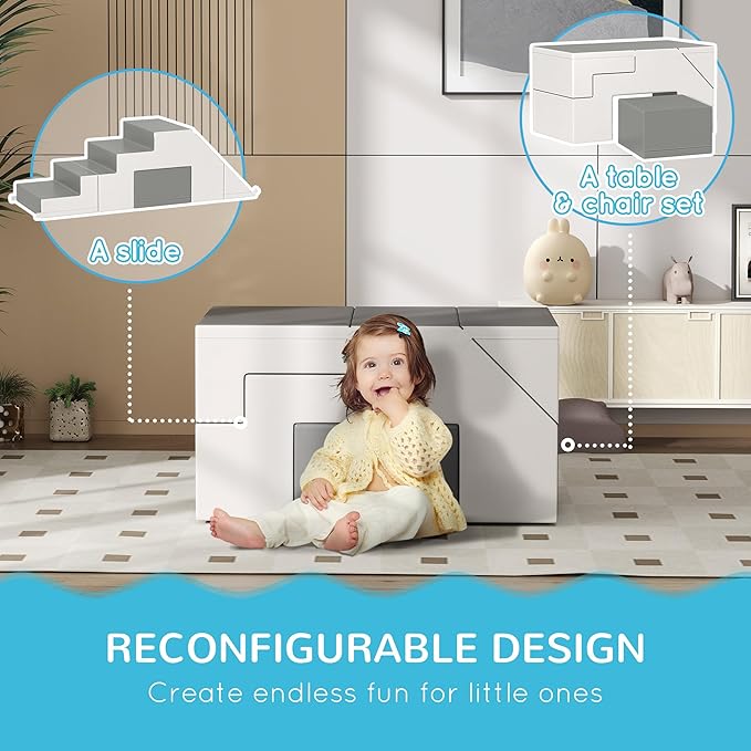 - Reconfigurable Design: Children will reconstruct this four-piece foam play set in any combination their imagination can create. The modular design encourages the utilization of multiple sets.
