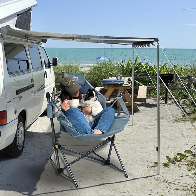 - Designed for Comfort: Camping swinging chair with padded fabric and pillow offers you a de-stressing, relaxing experience in outdoors. Adjustable backrest helps you to find the most comfortable position to sit or lie down.