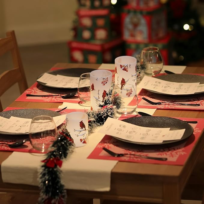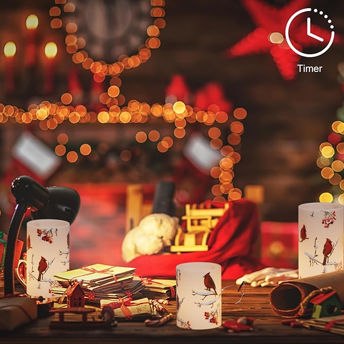 - Red Bird Decals: Cardinals home decoration candle, suitable for placing on the table, desk, fireplace, windowsill, cabinet, shelf and any place you want to decorate, but also Halloween, Christmas, wedding, birthday party, family dinner romantic choice, let the Cardinals flamless candle light up every corner of your home