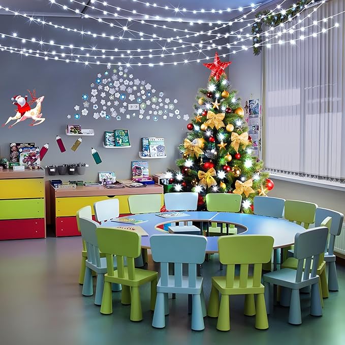 - Safer and Brighter: Upgraded higher brightness string lights are enough to cover the entire yard but non-dazzling. UL Listed Plug, 29V low output and Low-temp LED bulbs ensures safe to touch even after long time use. Very safety for kids and pets. Our Christmas lights is the most classic style, lighting along the eave, deck, balcony, stairs, fence, creates a charming atmosphere.