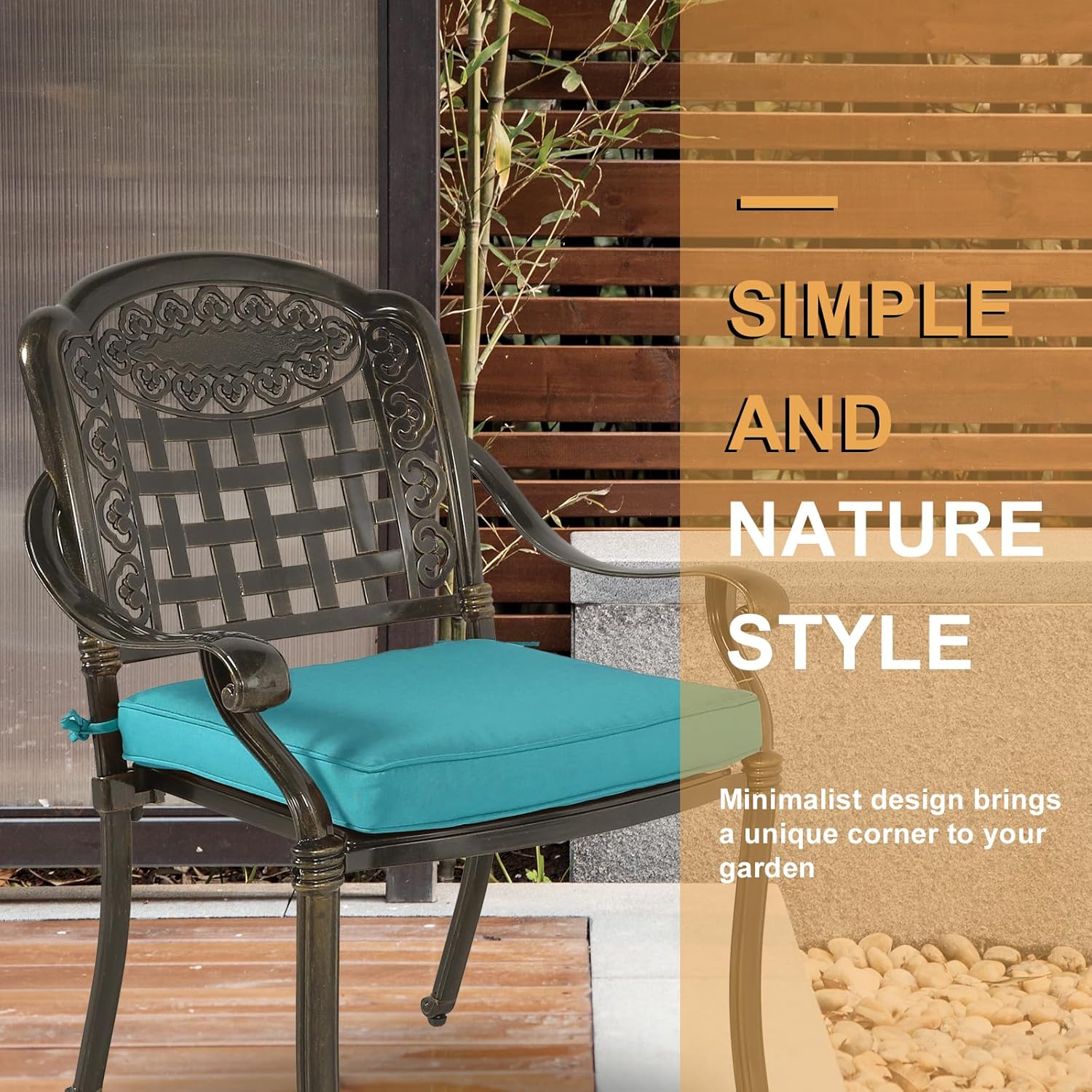 - 【Durable 3-Piece Dining Set】 - Made from cast aluminum for long-term durability. Resistant to rust, weather, fade, crack. This patio set includes 1 round table, 2 chairs, 2 cushions, and they stay in perfect condition regardless of the weather. It's also easier than ever to clean, just use a dry or damp rag to wipe down.