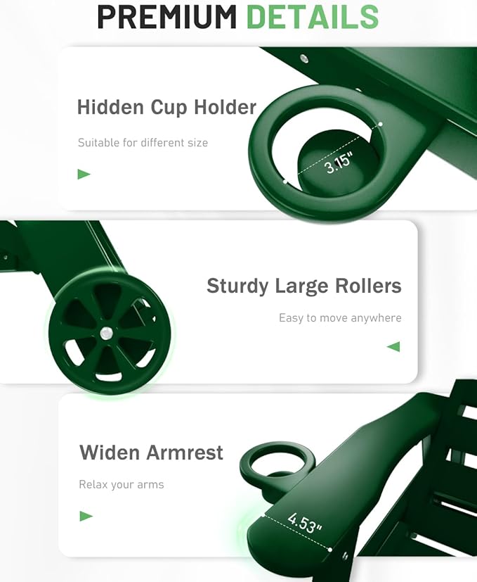 Chaise Lounge Outdoor with Wheels, Adjustable 6-Position Chaise Lounge Outdoor, Patio Lounge Chair for Poolside Backyard, Green