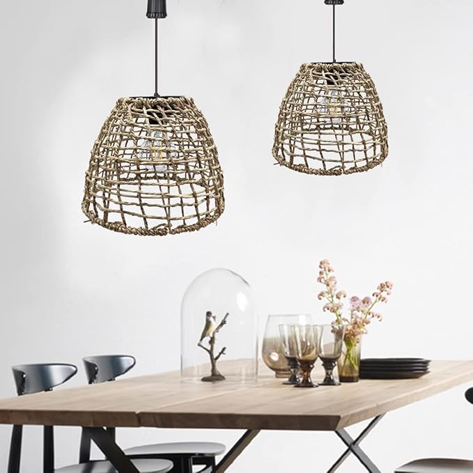- 【NATURAL LANTERN】Unique seagrass woven hanging lantern with an ABS Edison bulb . The hanging solar lanterns give you a vintage and natural feeling.