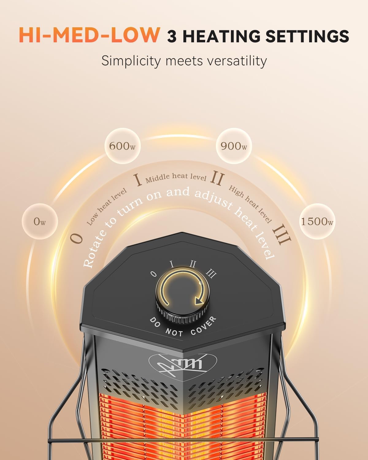 - 【1s Fast Infrared Heating】This 1500-watt outdoor heater for the patio features two high-efficiency carbon fiber heating wires and offers instant & focused sunshine-like heat. The infrared heater transfers heat directly to objects and people, heating faster to 1s.