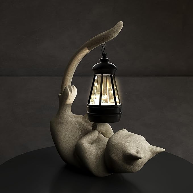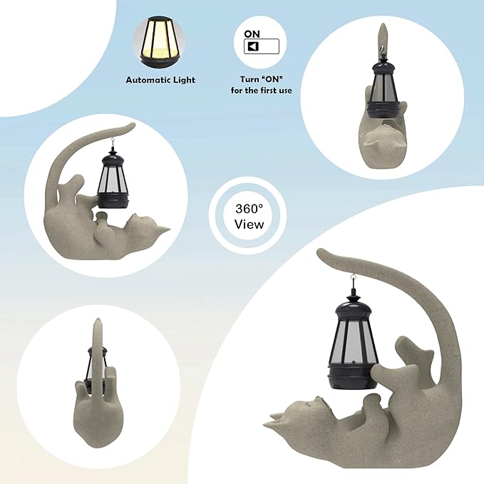 Solar Cat Garden Statue 10 Inch Porch Patio Decor for Outside Yard Decoration Outdoor Unique Housewarming Gardening Birthday Gifts for Cat Lovers Women Grandma