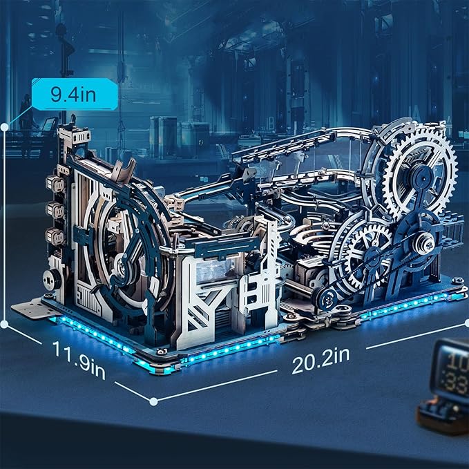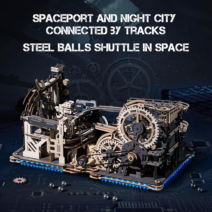 - [3 in 1] Includes Marble Spaceport LGC01, Marble Night City LGA01, and link pack. These sets combine for synchronized operation. Tool-free assembly, motor powered, with lighting modes and extended length tracks, delivering endless fun.