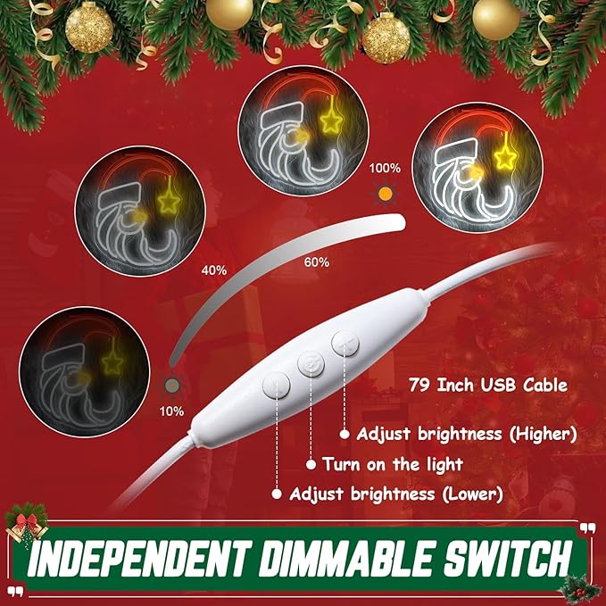 - Easy Installation & Versatile Display:Designed for convenience, the neon sign for wall decor comes with pre-drilled holes for easy wall mounting, so you can set it up quickly without any hassle. The included USB power cord provides plenty of flexibility to connect to various power sources, whether it’s a USB port, power bank, or wall adapter, making it easy to display Santa anywhere you like.