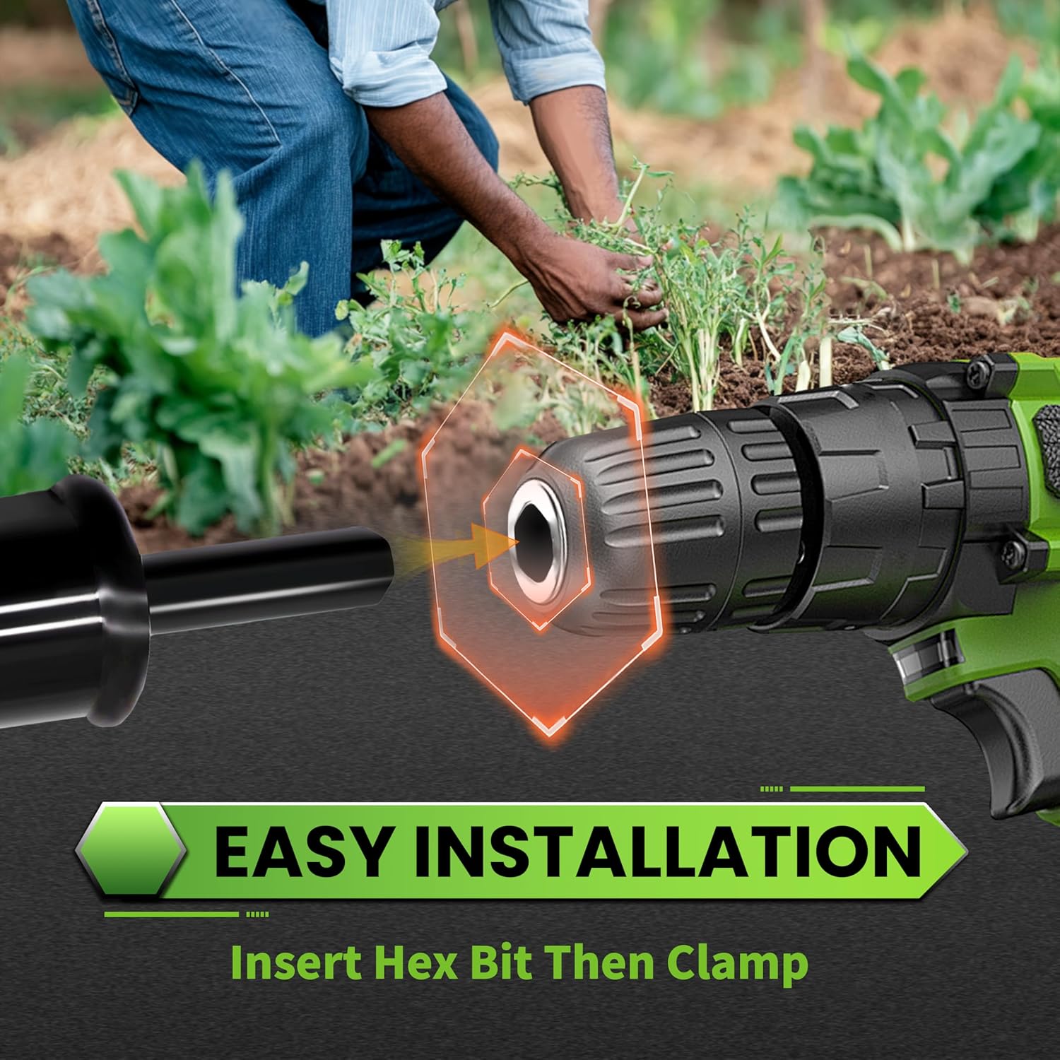 - 【Say Goodbye to Backache and Hand Pain】No more blisters or hand pain.Allowing you more time to enjoy planting.The bulb auger for cordless drill will help you punch hundreds of holes of different sizes and widths in minutes, saying goodbye to tedious manual gardening.