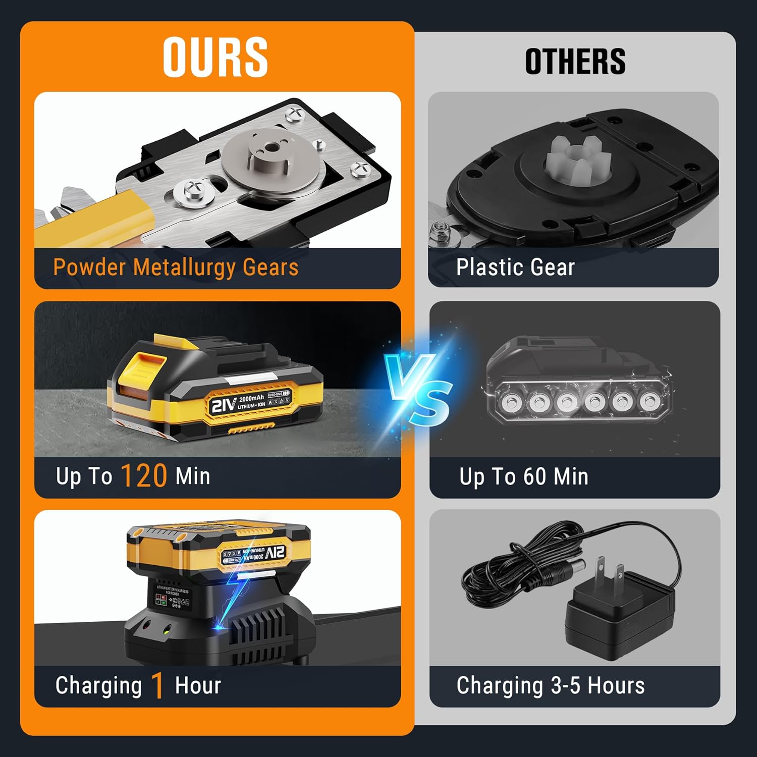 - ✅ UL-Listed fast charger & high-performance lithium battery, 60-minute fast charger – enjoy 120+ mins (2 x 2000mAh) continuous runtime. Battery has a built-in intelligent protection system. Compatible with EWORK 21V series (Leaf Blower/String Trimmers). 500+ cycle battery lifespan tested, Battery Management System (BMS) actively guards against overcharging/overheating/short circuits while maintaining 80% capacity after 800 cycles
