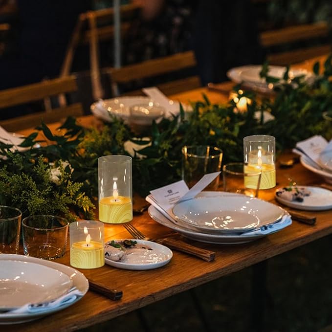 - REALISTIC 3D FLAME: Flickering wick make these LED flickering candles a real candles looking, 3D wick keeps flickering continuously when you light them up, create a romance Christmas and cozy atmosphere in your room everywhere. A great addition to your Christmas indoor decoration