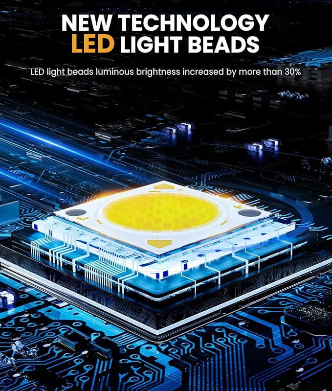 - 58 NEW TECHNOLOGY LED BEADS: The solar flood lights adopts new technology LED beads, the luminous efficiency of LED beads can reach 130lm/W, the luminous brightness is increased by more than 30%. 58pcs LED beads use zoned dense arrangement design, so that the solar light has more light focusing points, larger irradiation range, longer and brighter illumination distance.