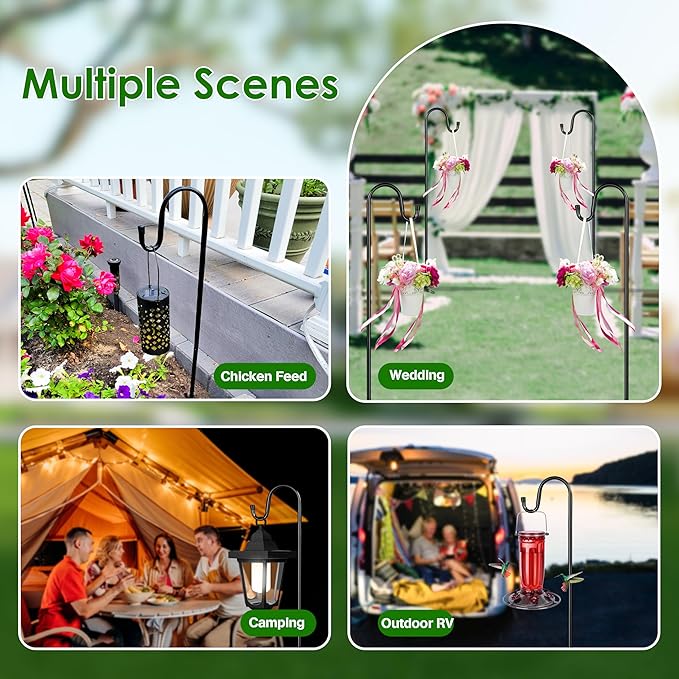 - Elegant and Sturdy Design: Our Shepherd's Hooks feature a classic and elegant design, perfect for enhancing the beauty of any outdoor space. Built with durability in mind, these hooks are crafted from high-quality materials to ensure long-lasting performance, even in tough weather conditions.
