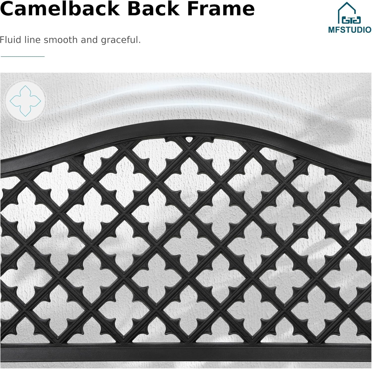 MFSTUDIO 50" Black Outdoor Metal Garden Bench, Cast Iron Frame Patio Furniture with E-Coating, Perfect for Porch and Yard