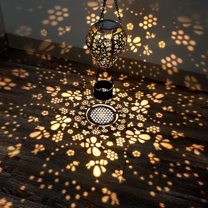 - 【Quality Materials】The product is waterproof, maintaining good performance even under harsh weather conditions. Compared to fragile glass hot air balloons, the Profinella hot air balloon solar lantern is made from durable metal that are less prone to breaking and also has a brilliant projection pattern. When the breeze blows, the lantern will sway slightly, and the lights will produce a flickering effect similar to the dance of flames.