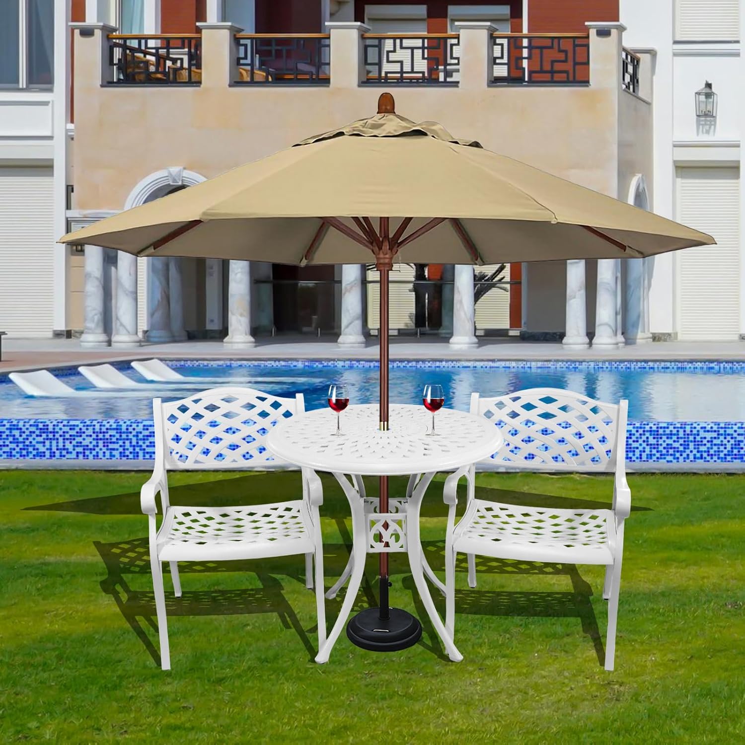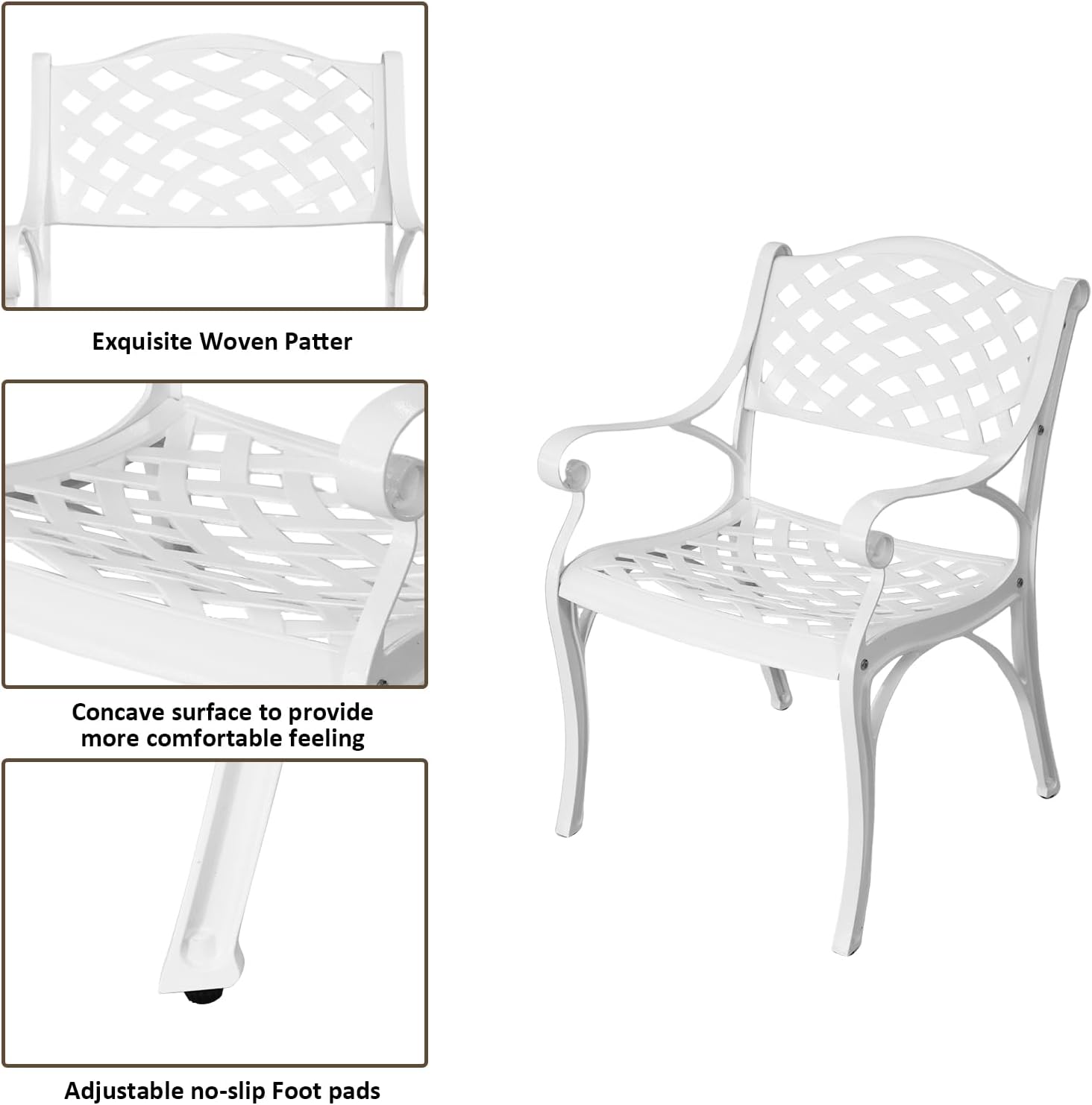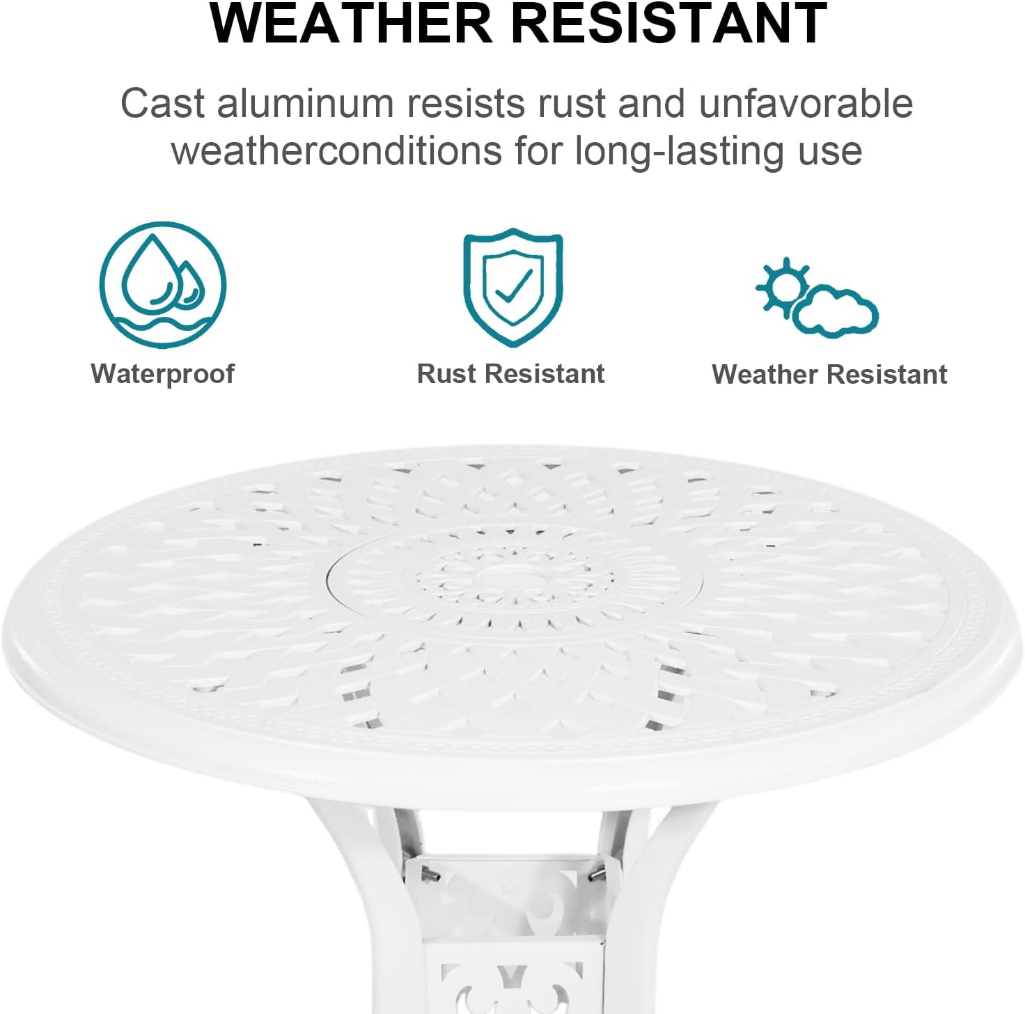 Outdoor Patio Table and Chairs Patio Dining Furniture Set Cast Aluminum Outdoor Table and Bistro Chairs for Garden (White, 3 Piece Round Table Set)