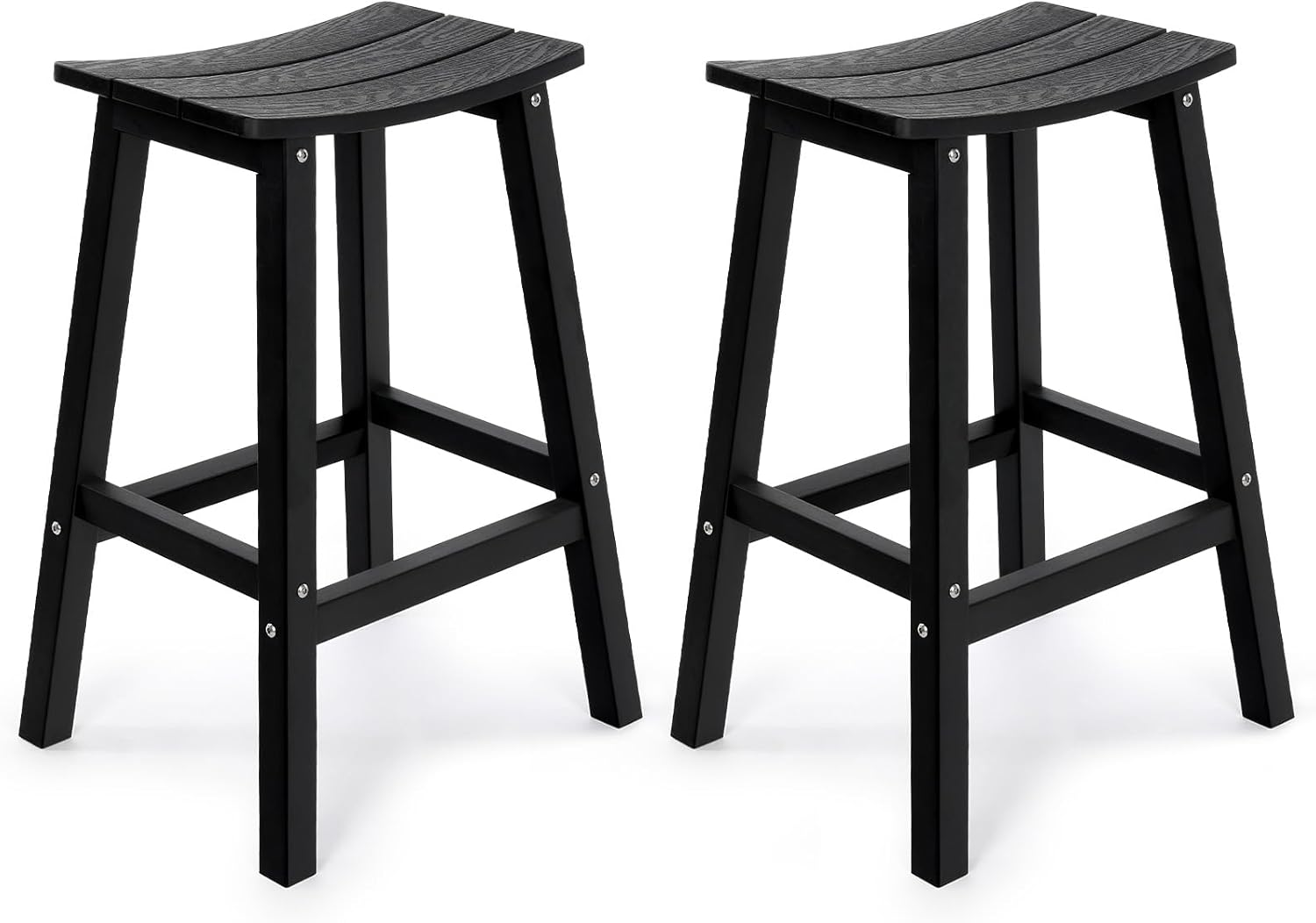 Weatherproof Bar Stools Set of 2, 28" Height Outdoor Bar Stools Holds up to 400 lbs, Saddle Seat, Bar Height Stools for Patio, Garden, and Kitchen Island, Black