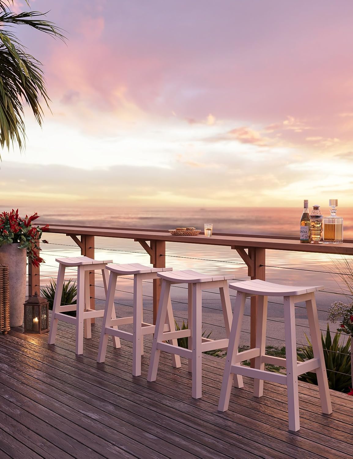 - 【Weatherproof Materials】 The bar stools made of HIPS (poly lumber), with 304 stainless screws. It's for all-weather, never rusts and moldy. It can withstand hot sun, heavy snow, salt spray and strong coastal wind.
