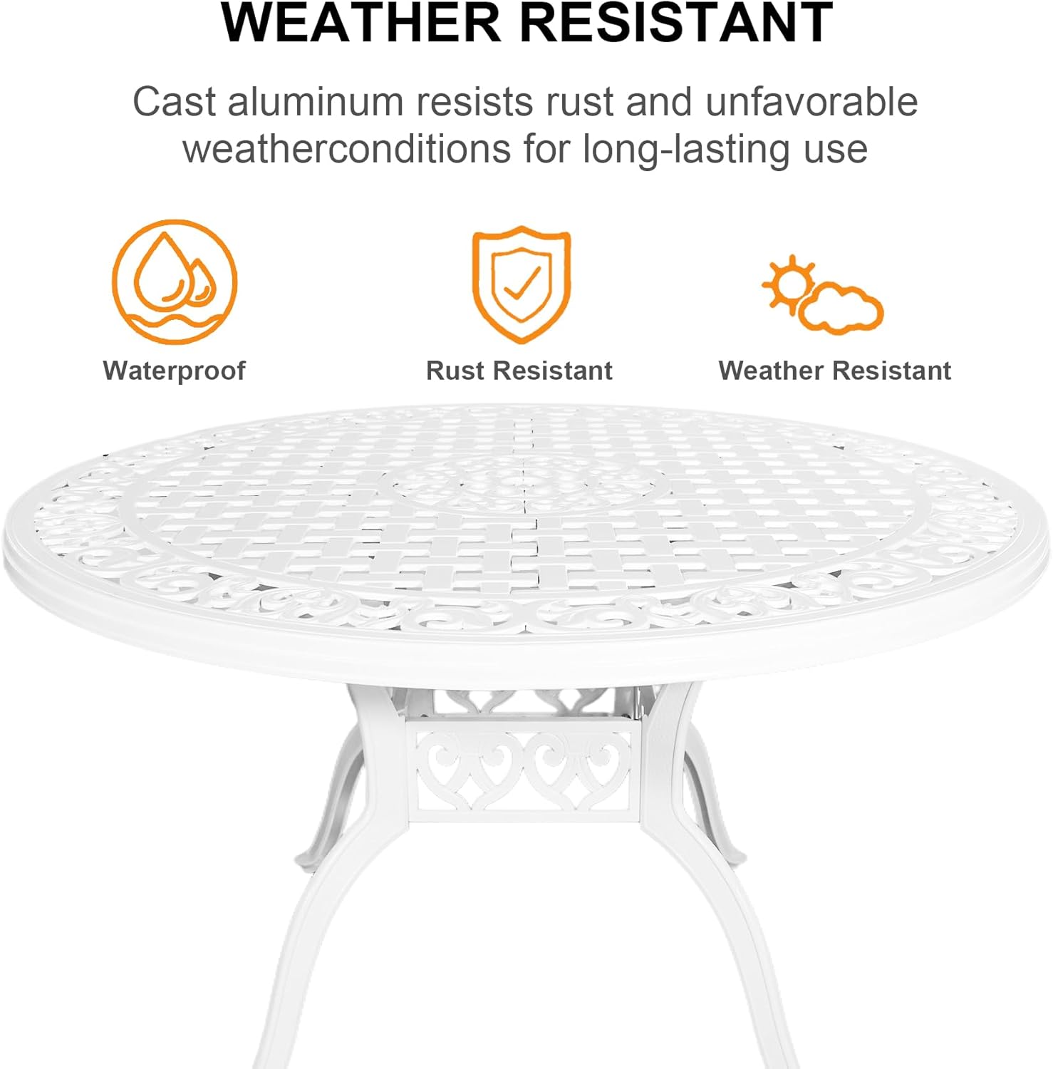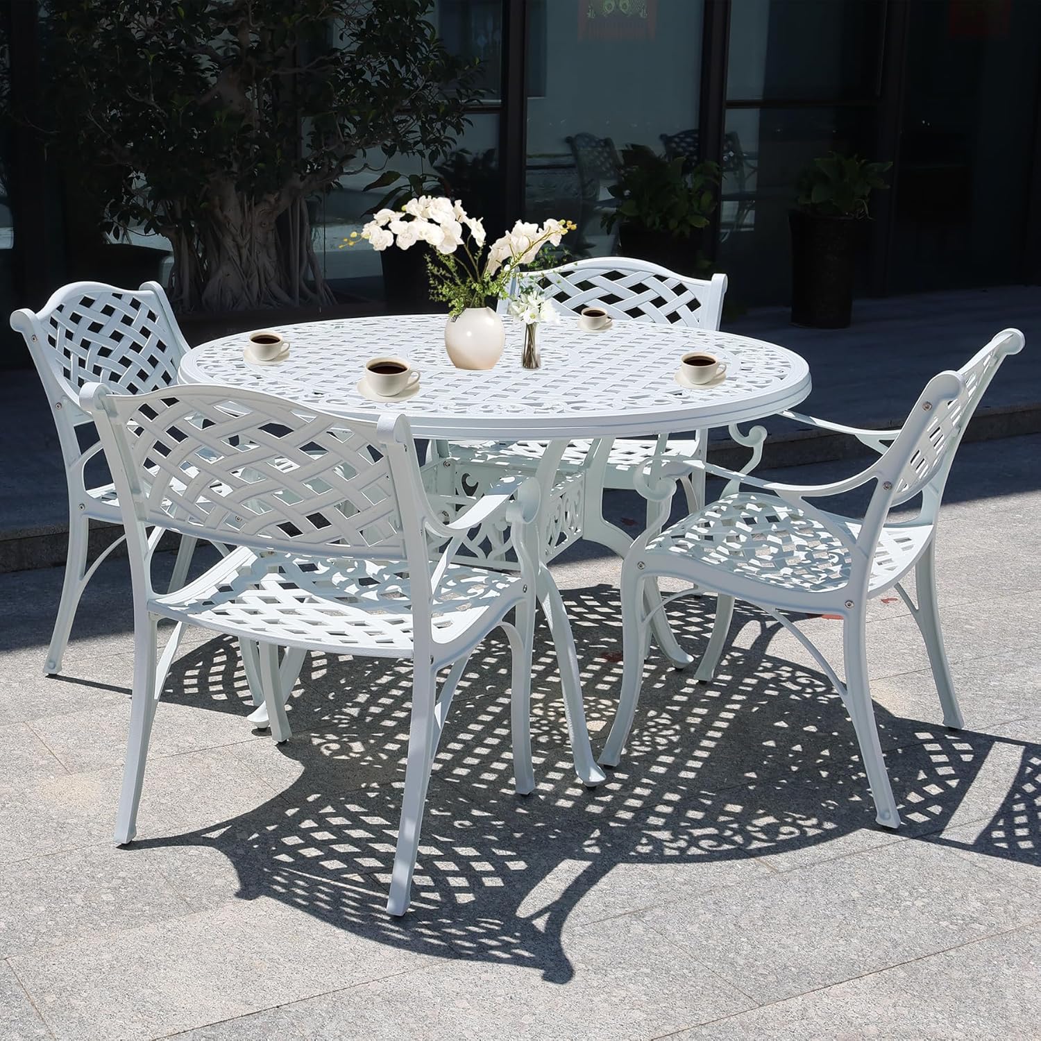 5 Piece Patio Dining Set Outdoor Patio Round Table and Chairs Set of 4 with Umbrella Hole,Cast Aluminum White Outdoor Bistro Dining Set, Patio Furniture Set for Garden,White