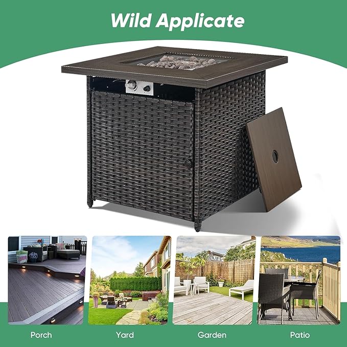 - 4.Embrace Warmth and Ambiance: Elevate your outdoor gatherings with the included propane fire table. Perfect for chilly nights, it adds a touch of warmth and ambiance to your space. Make lasting memories as you gather around, enjoying drinks and snacks in style and comfort.
