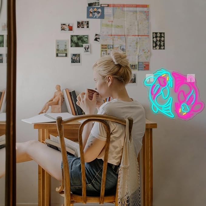 - High Quality Neon Sign: Koi fish neon sign neon light signs are made of silicone tube+led neon strips +acrylic back plate. Led neon signs is bright, noise free and energy-saving,5V low voltage, long life, no risk of too hot or glass damage.