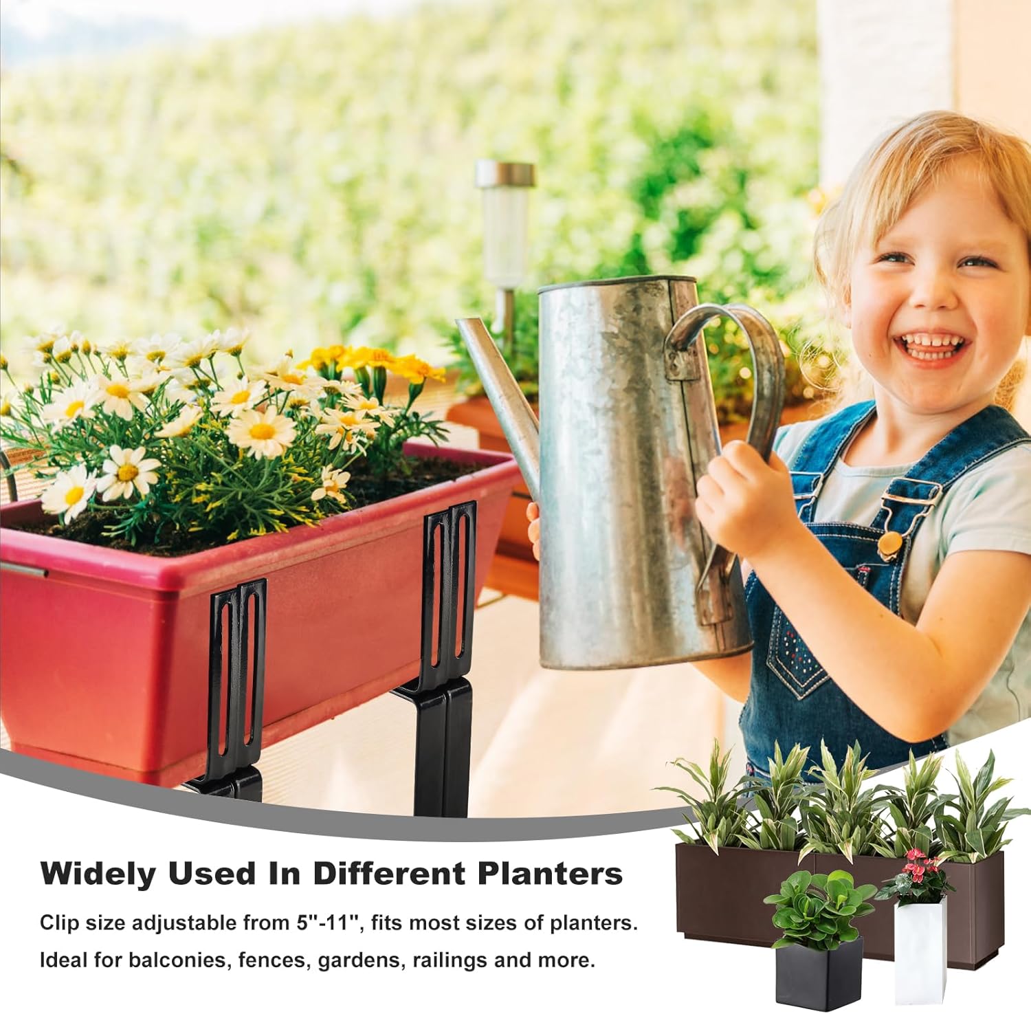 - 【A Nice, Sturdy, Attractive Deck Solution】SAYUUM railing planters stand size: 7 × 6.5 × 1.5 inches, This steel rectangular planter box clips are specially designed to secure your flower pots sit on top of rails. The two-way clip design ensures that your plants will rest securely on your deck rails and will not be easily wobbling or falling over