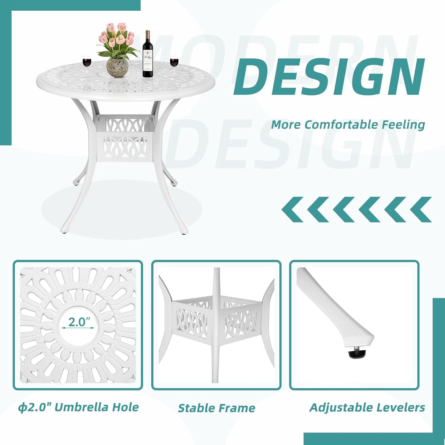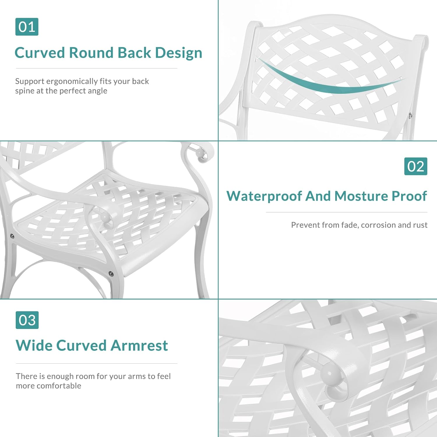 - 【Dimensions】 - Our round table is 35.4"(Dia) x 29.5"(H), and each of 2 chairs is 22.4"(L) x 23"(W) x 32.5"(H), you’ll love how this furniture set uniquely accents your space. Quickly assemble so you can enjoy it in no time, all hardware, tools and instructions required are included for easy assembly. Over this summer to show off your new, stylish, cast aluminum dining set to everyone
